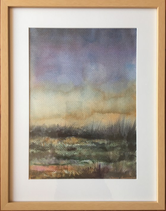 abstract, dark, horizontal, landscape, small works, sunset, watercolor